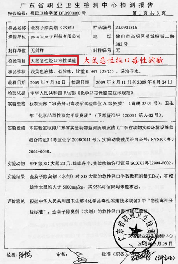 廣東省職業衛生檢測中心檢測報告