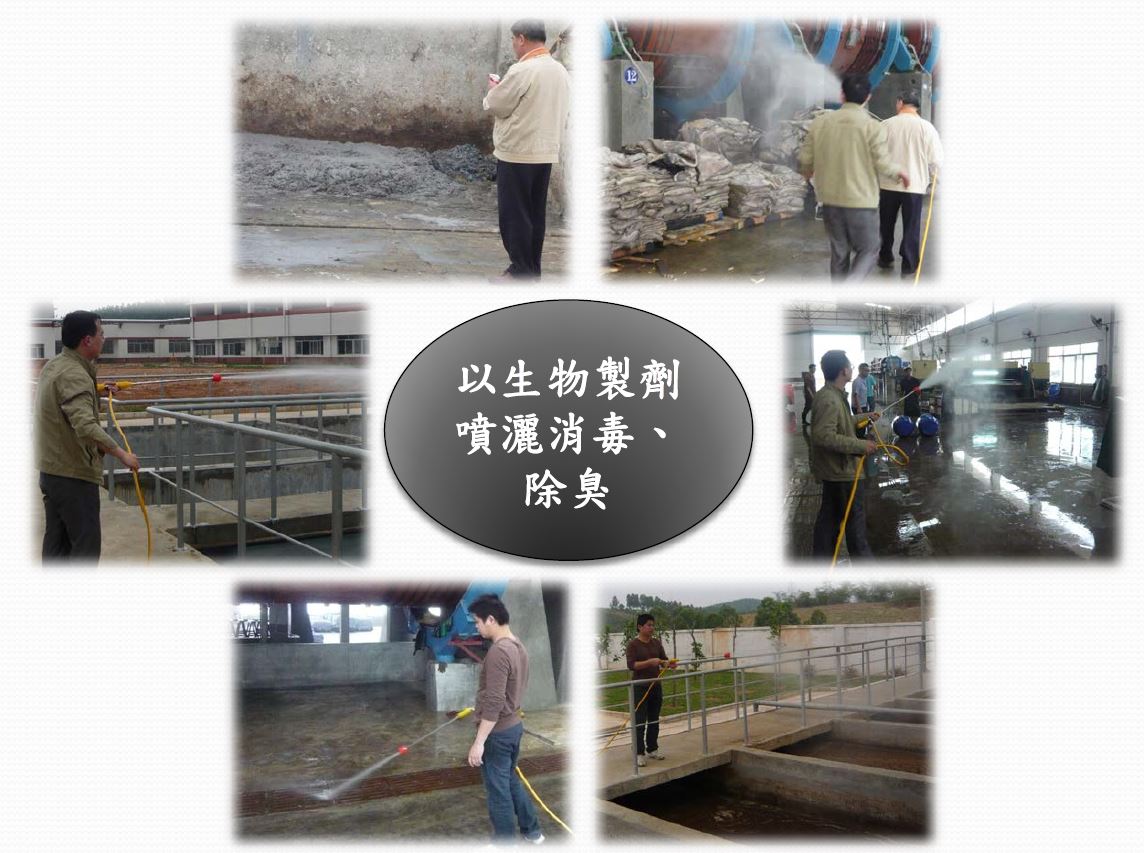 環境異味處理劑為貝殼經過微生物發酵工程與特殊配方所製成,具除臭功能的環境衛生製劑,透過噴灑方式以促進環境空氣之品質。